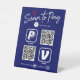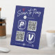 Navy Blue Modern Trendy script QR code scan to pay Pedestal Sign