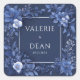Seal your celebration correspondence and favours with a design that embodies dramatic monochrome elegance and deep sophistication. This stunning wedding sticker features a lush, textural border of florals and foliage set against a smooth, dark navy blue (or midnight blue) background. The entire composition uses a refined monochrome palette, blending deep sapphire blue with cool cobalt and touches of light, frosty white on the smaller blooms, creating incredible depth and dimension. The large, layered flowers and surrounding leaves, rendered with a painterly, sculptural feel, beautifully frame the central space. A crisp, modern silver square frame overlays the composition, providing a clean geometric element that draws the eye to the personalisation area. This elegant, sophisticated aesthetic is the perfect choice for couples planning a monochrome wedding, a formal winter event, or a celebration emphasising rich, deep blue colours and dramatic artistry. Its versatile use for other businesses, events, or situations makes it an exceptional choice for any occasion demanding an air of unmatched luxury and historical artistry.
