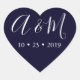navy blue monogram elegant wedding heart sticker