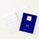 A navy blue background, white text. Personalise and add your logo, monogram initials, name and a title. Your logo both on the front and the back. Space for your website address on the back.