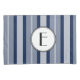 Pillowcases with changeable monogram on navy blue modern line pattern.