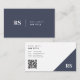 This editable business card template is a stylish and minimalist way to present yourself and your business. It has a navy blue background that creates a sophisticated and elegant look, a monogram that represents your initials, and a QR code that links to your online presence.