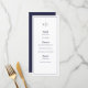 Elegant block monogram wedding menu card. Navy blue text with thin navy blue border. Back is navy blue. To adjust the layout for your specific menu, click Customise It, Edit Text, then click and drag text sections to desired locations. Use Cntrl to select and move multiple sections at once.