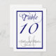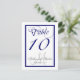 Custom Monogram Wedding Table Number Card with Navy Blue Fancy Script Font. Design by Elke Clarke ©2011. Customise with your personal information, wedding date and colours. Order one per table with each table number but still receive the bulk discount for total number ordered.