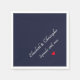 Create your own custom, personalised, elegant white typography / calligraphy / script / font on dark navy blue background, bride groom / couple names, wedding / anniversary date, red heart, your choice of white or ecru coloured, coined or standard style, food contact safe, party celebration cocktail luncheon dinner paper napkins that look good tucked in the collar or draped over your lap. Simply type in the bride and groom's or wife and husband's names, and the wedding date, to customise. Elegant, classy paper napkins, perfect for wedding reception, anniversary celebrations, engagement party, and more.
