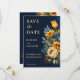 Dark Navy blue moody rustic sunflowers wedding save the date invitation, summer fall wedding save the date blue and yellow themed wedding