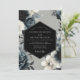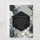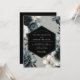 This design features a dark and atmospheric aesthetic perfect for a formal winter event. A lush arrangement of deep navy roses and charcoal-toned peonies creates a moody botanical backdrop. Delicate ivory anemones provide a striking contrast against the midnight shadows. It evokes a sense of mystery and timeless elegance for an evening affair.
