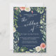 Navy Blue n Blush Floral Wedding Rose Foliage Leaf Invitation