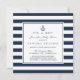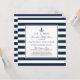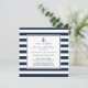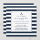 Nautical-inspired baby shower invitation featuring navy blue and white stripes and an anchor. Personalise this nautical baby shower invitation by adding your details.