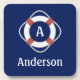 Navy Blue Nautical Lifesaver Monogram Coaster