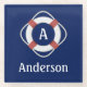 Navy Blue Nautical Lifesaver Monogram Glass Coaster