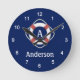 Navy Blue Nautical Lifesaver Monogram Round Clock