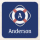 Navy Blue Nautical Lifesaver Monogram Square Paper Coaster