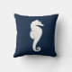 Navy Blue Nautical Throw Pillow White Sea Horse