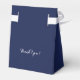 Navy blue nautical wedding favour boxes (tent favour box with white ribbon) with anchor and customisable text - you can add bride's and groom's name and wedding date.