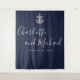 Featuring a ship's anchor and chic typography script, this chic nautical wedding photo booth backdrop can be personalised with your names and special date. Designed by Thisisnotme©