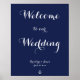 Custom navy blue nautical wedding reception sign print with white anchor and customisable text - you can add bride's and groom's name and wedding date. Dimensions of the sign print (poster) are 16 inches by 20 inches.
