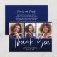 Navy blue ombre' graduation 3-photo "Thank you" card personalised with your photos, your name, school name, and graduation year.
