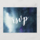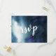 Elegant RSVP card for your starry night themed wedding! This postcard has a beautifully hand painted watercolor background in navy blue ombre colour. It says "rsvp" in modern script font. In the back, there is silver glitters on both sides of the card, and the guests can write their name and number of attendees. Your address can be pre-printed as well. Texts are easily customisable online.
