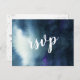Navy Blue Ombre Silver Glitter Wedding RSVP Invitation Postcard