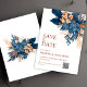 Navy Blue Orange Boho Floral Elegant Wedding Save The Date