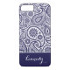 Navy Blue Paisley Floral Pattern Monogram Name Case-Mate iPhone Case