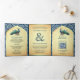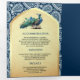 Navy Blue Paisley Indian Peacock QR Code Wedding Tri-Fold Invitation
