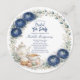 Elegant bridal shower design featuring a navy blue palette tea party theme with a circular floral arrangement, teacup, teapot and dessert accents. Perfect for classic afternoon tea celebrations, garden bridal showers and sophisticated bride to be gatherings. A timeless and refined choice for a feminine tea party event.