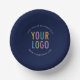 Promote your brand with durable paper bowls printed with your company logo. You can easily personalize these navy blue bowls online to match any event or promotion. All colors are customizable. FDA-compliant, these bowls are printed in the USA and sold in small order quantities. The dimensions are 7-inch diameter and 1.5 inches deep. No setup fee.
