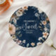Navy Blue Pastel Wildflowers Sweet 16 Paper Plate