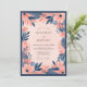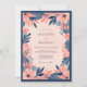 Navy Blue Peach Bold Floral Wedding Invitation