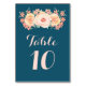 Vintage and elegant table number cards in navy blue with light peach and blush pink watercolor flowers. Customise these cards with your table numbers for a special addition to your wedding tables. Also suitable for birthdays and anniversary parties.
