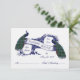 Navy blue vintage peacocks wedding RSVP card for wedding invitation collection in the store. This gorgeous wedding RSVP card design is perfect for a vintage wedding or peacock wedding theme. This unique design with two beautiful peacocks on vintage scroll or banner and text in a dark navy blue font and monogram initials on the back, create a unique, stylish wedding reply card. Need more room, add extra text on the back of the card. Elke Clarke© Shown on linen paper. Need help or would like a different colour combination, please contact luxuryweddinginvitations@gmail.com