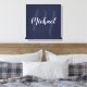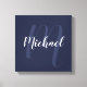 featuring name in white modern script font style and monogram in light navy blue modern script font style as background on navy blue background.