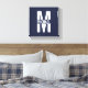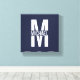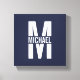 featuring personalised monogram in white bold modern sans serif font style with box of name in the middle of monogram on navy blue background.