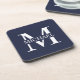 featuring personalised white monogram in classic serif font style with box of name in the middle of monogram on navy blue background.