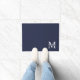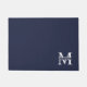 featuring personalised white monogram in classic serif font style with box of name in the middle of monogram on navy blue background.