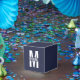 featuring personalised monogram in white bold modern sans serif font style with box of name in the middle of monogram on navy blue background.