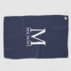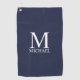 features personalised monogram and name in white classic serif font style on navy blue background.