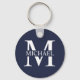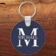 featuring personalised white monogram in classic serif font style with box of name in the middle of monogram on navy blue background.