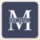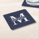 Navy Blue Personalised Monogram and Name Square Paper Coaster