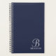 features personalised monogram in white classic script font style and name in white classic serif font style on navy blue background.