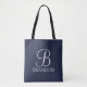 Navy Blue Personalised Script Monogram and Name Tote Bag