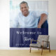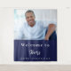 A tapestry for a 40th (or any age) birthday party for guys. A classic navy blue background. Personalise and add your own high quality photo of the birthday boy/man. The text: The name is white with a modern hand lettered style script. Tempates for a name, age and a date. Can be used as wall decor for the party or as a photo booth backdrop.