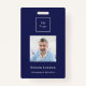 Navy blue background, white text. Add your business logo, a photo, name and title.