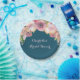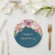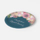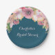 Customisable name bridal shower party plates in navy blue with vintage pink watercolor wildflowers.