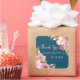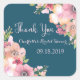 Bridal Shower thank you favour tag stickers in navy blue with vintage watercolor wildflowers in shades of pink. A great way to decorate wedding shower favours.