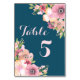 Navy Blue Pink Floral Wedding Table Number