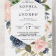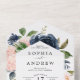 Navy Blue & Pink Flowers Wedding All In One Invitation
