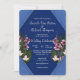 Textured navy & blue fabric with a flare of pink graphic flowers, matching the garden guest cottage decor for a wedding theme to personalise